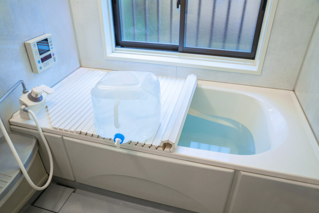これらは大量に使用するため、ペットボトルでの保管は難しいので、お風呂の残り湯を浴槽にためる習慣をつけましょう。万が一、火災が発生したときの消火用水としても利用できます。注意する点はトイレでの使用です。残り湯で流すと故障や詰まりの原因になる場合がありますので、事前に確認しましょう。
